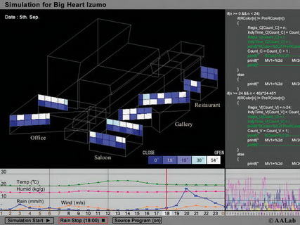 - Complex for performing arts and gallery - Design : C+A Control program of louver windows Breathing building makes people feel seasons inside the building. An ecology plan in harmony with the natural environment. Factors : wind, temperature, rain, humidity and enthalpy ![]() |
